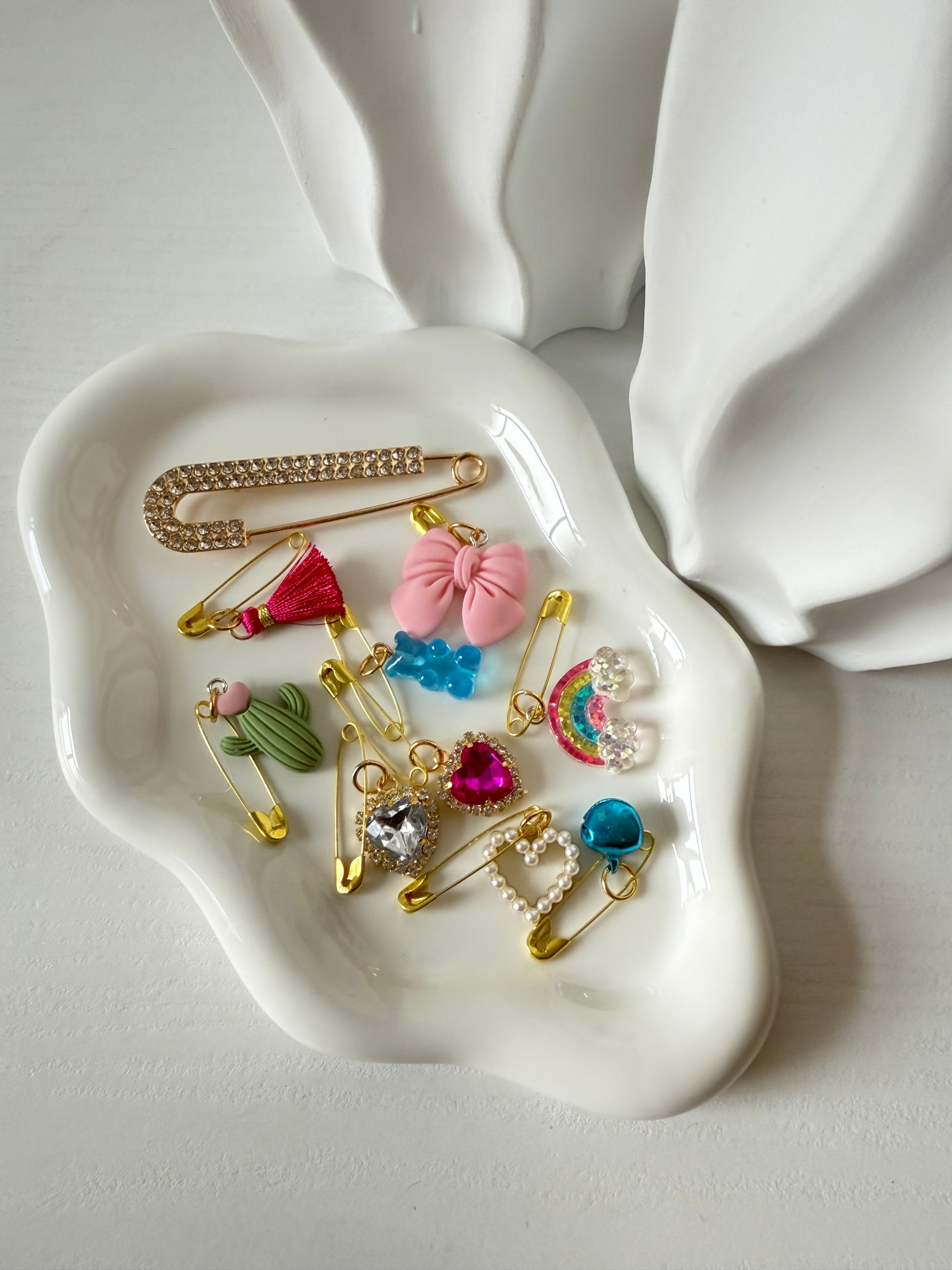 Kit composto da 10 pezzi, dotati di spille da balia.